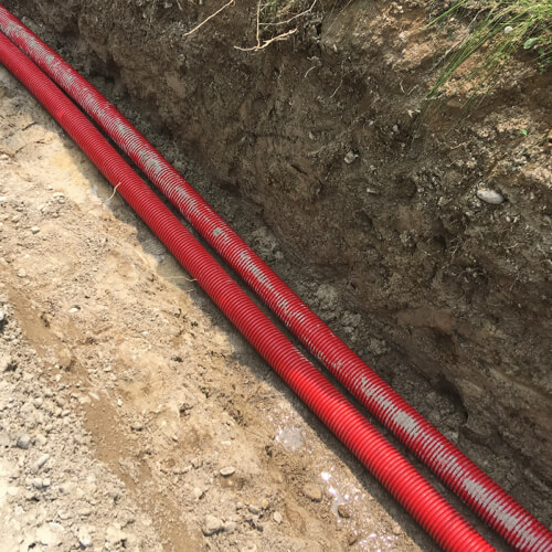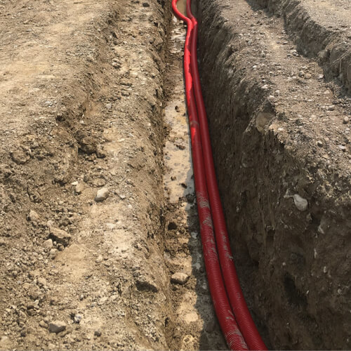 Super Corflo® is a dual-wall polyolefin duct conduit. Its pliability provides an added ease of use component to open trench applications, and is an economical choice for conduit and inner duct applications. The dual-wall design offers a light-weight, easy to handle conduit system with an increased crush-resistance, and semi-smooth inner wall for seamless cable pulling. Super Corflo® can be used anywhere rigid PVC is used, such as: city infrastructure projects, solar farms, substations or any open trench work.